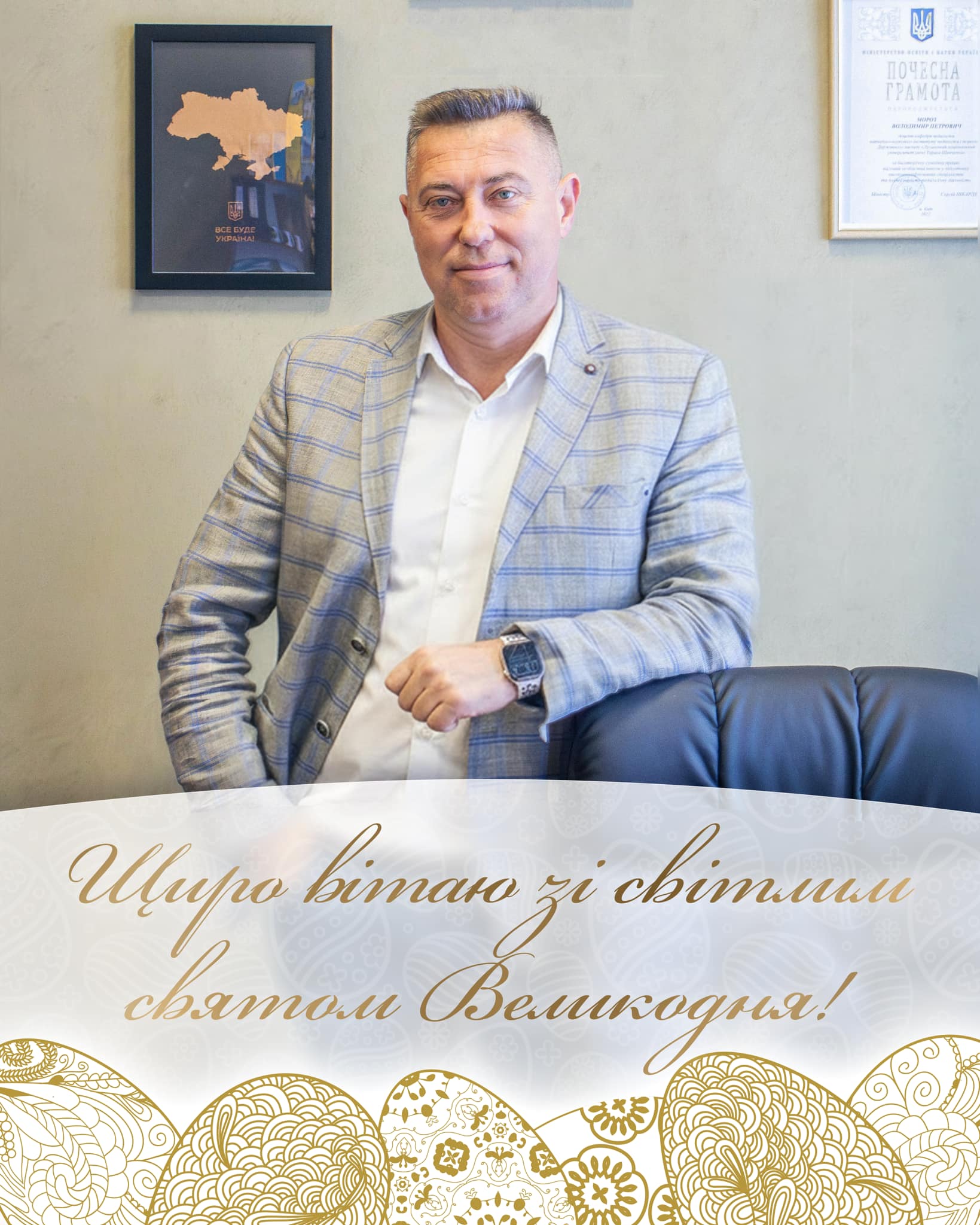 Від імені профспілкової організації університету та від себе особисто щиро вітаю вас із світлим святом Великодня! Нехай це велике свято принесе у ваші домівки мир, надію, душевне тепло й гармонію. Бажаю міцного здоров’я, родинного затишку, Божого благословення, впевненості у завтрашньому дні та натхнення для нових добрих справ. Нехай у ваших серцях завжди живе віра, у душі — спокій, а поруч будуть люблячі люди та вірні друзі.
